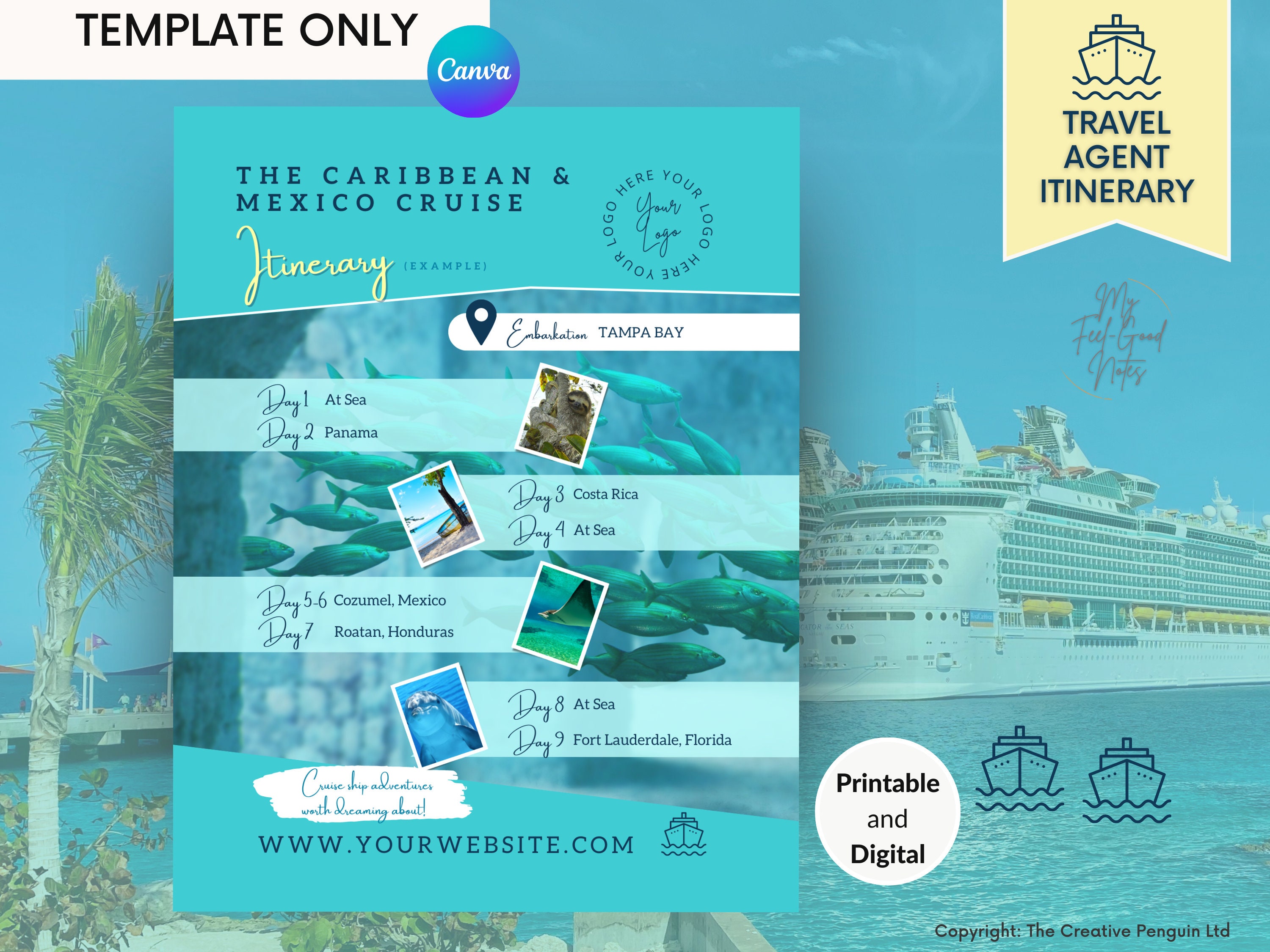 Cruise Flyer Template Travel Agency Itinerary Canva Etsy