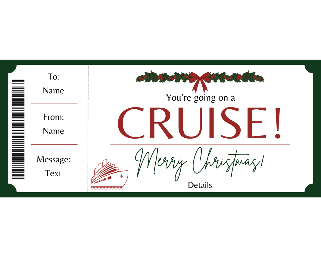 EDITABLE Christmas Cruise Trip Ticket Cruise Gift Certificate Template