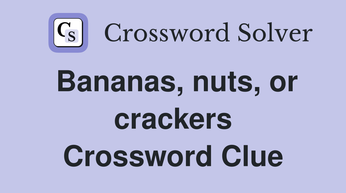 Bananas nuts or crackers Crossword Clue Answers Crossword Solver