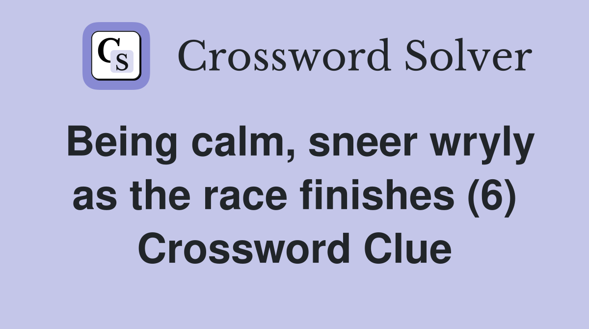 Being calm sneer wryly as the race finishes (6) Crossword Clue