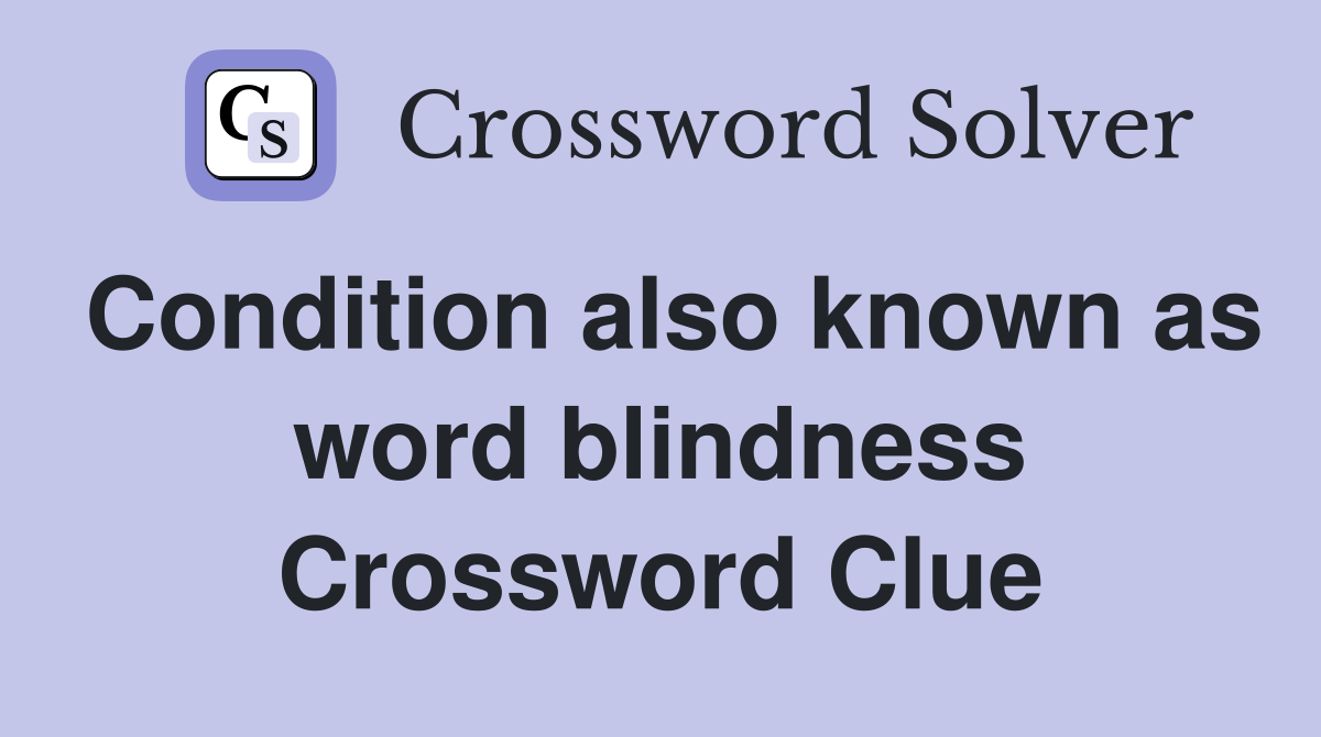 Condition also known as word blindness Crossword Clue Answers