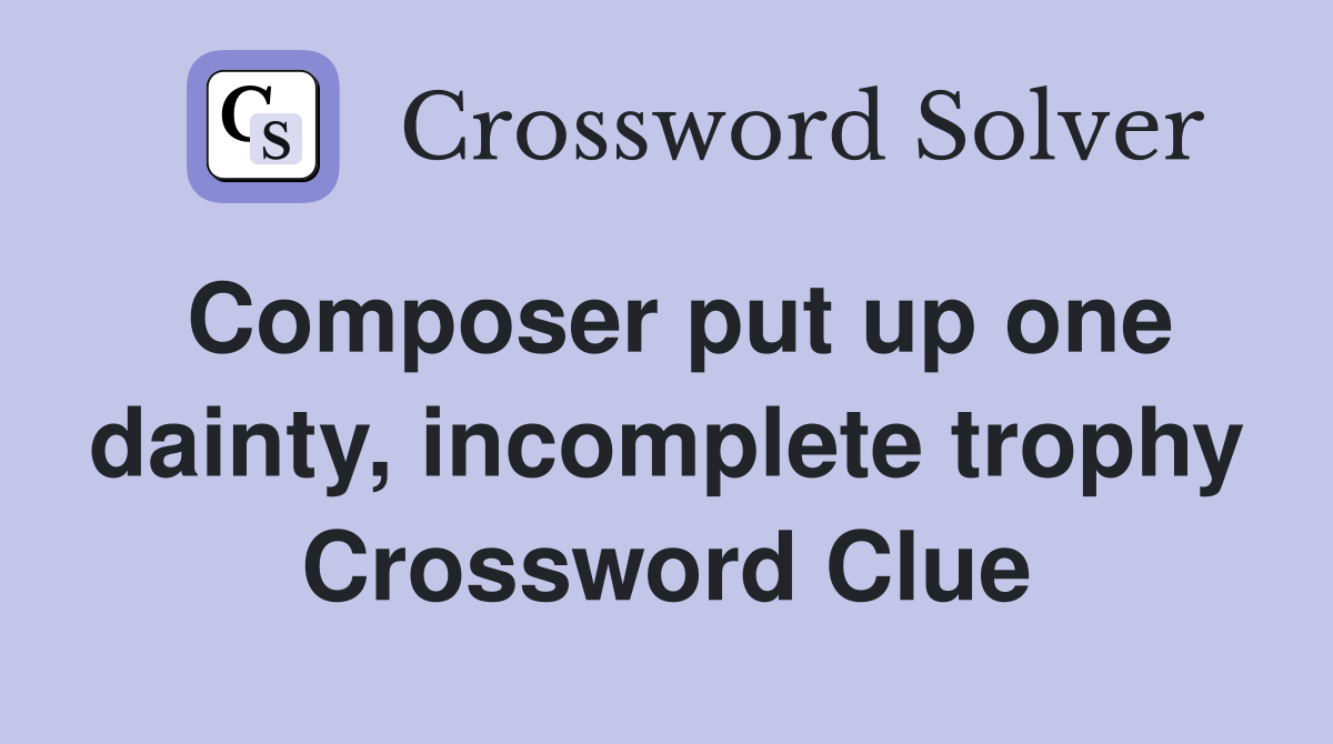 Composer put up one dainty incomplete trophy Crossword Clue Answers