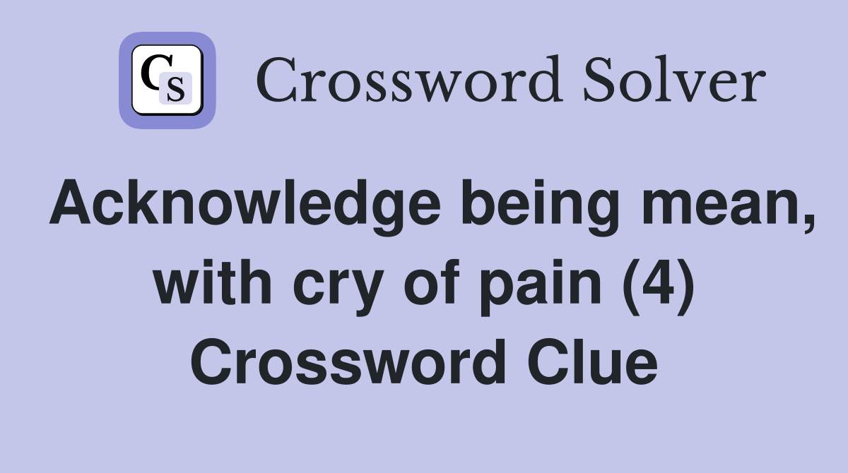 Acknowledge being mean with cry of pain (4) Crossword Clue Answers