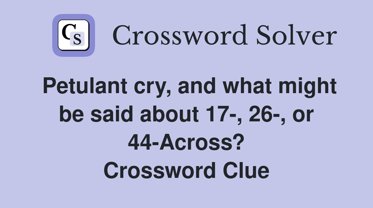 Petulant cry and what might be said about 17 26 or 44 Across
