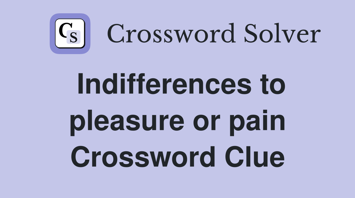 Indifferences to pleasure or pain Crossword Clue Answers Crossword