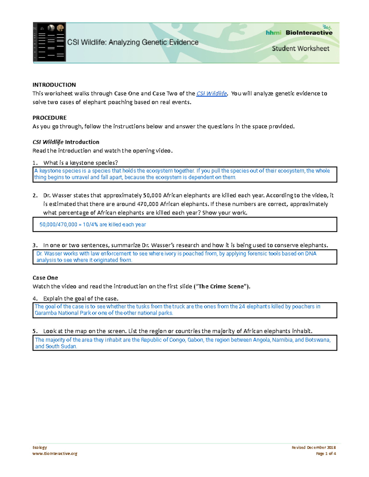 SOLUTION: Csi wildlife worksheet completed1 Studypool