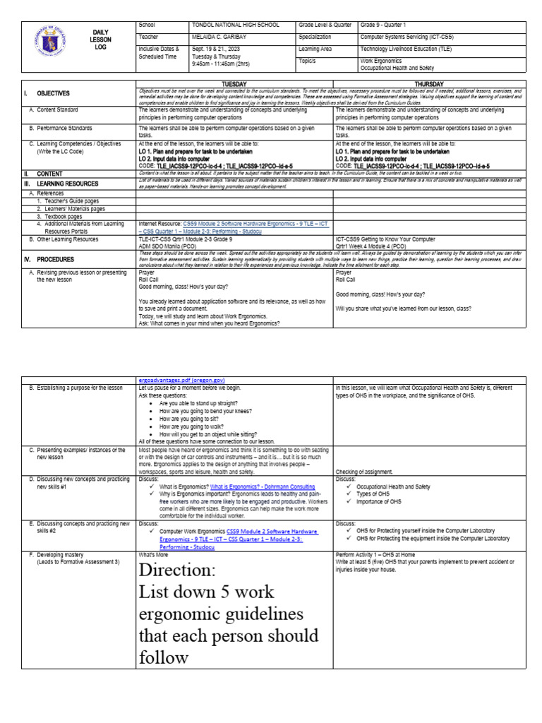 Revised Tle As CSS 10 Q3 WK8 PDF Occupational Safety And Health Risk