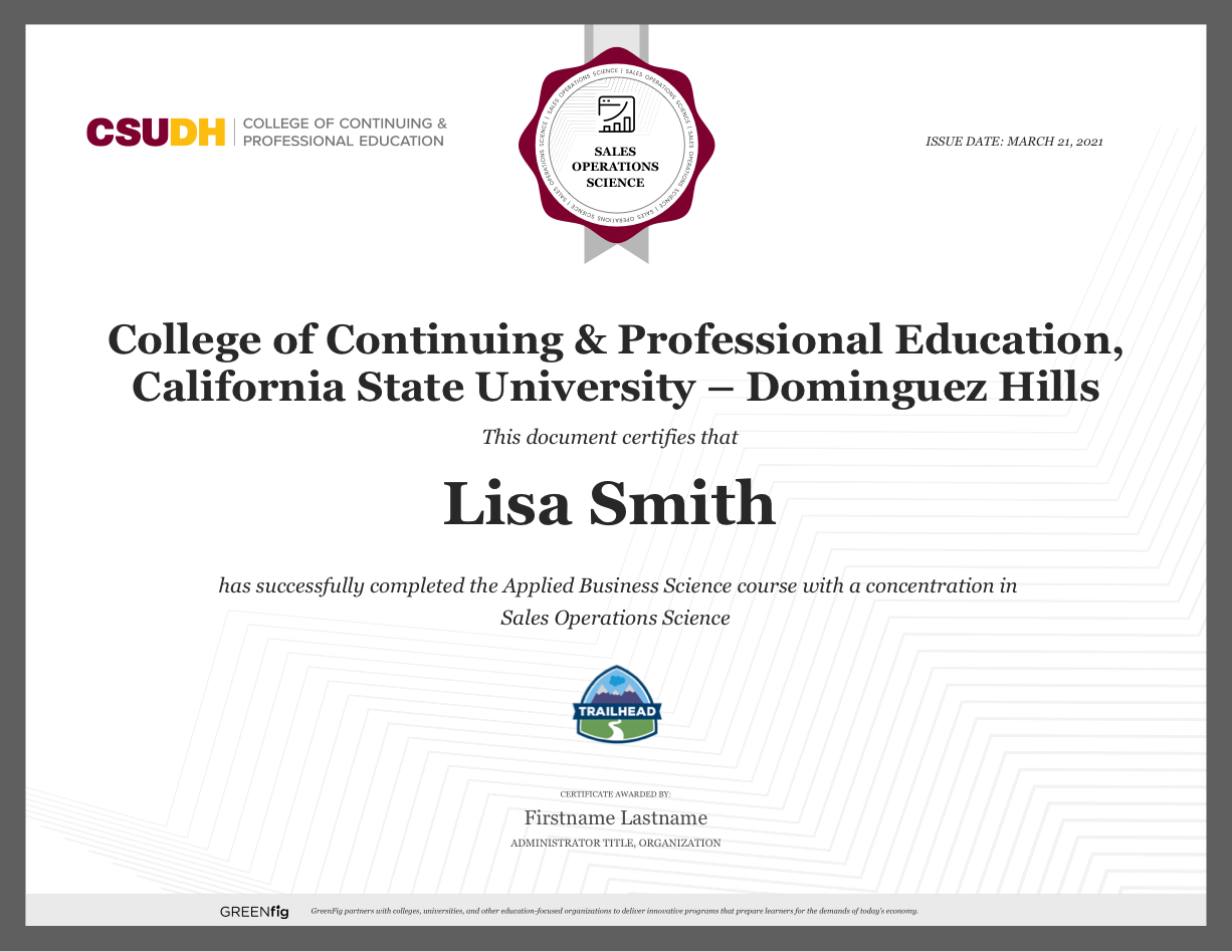 Sales Operations certificate course CSU Dominguez Hills