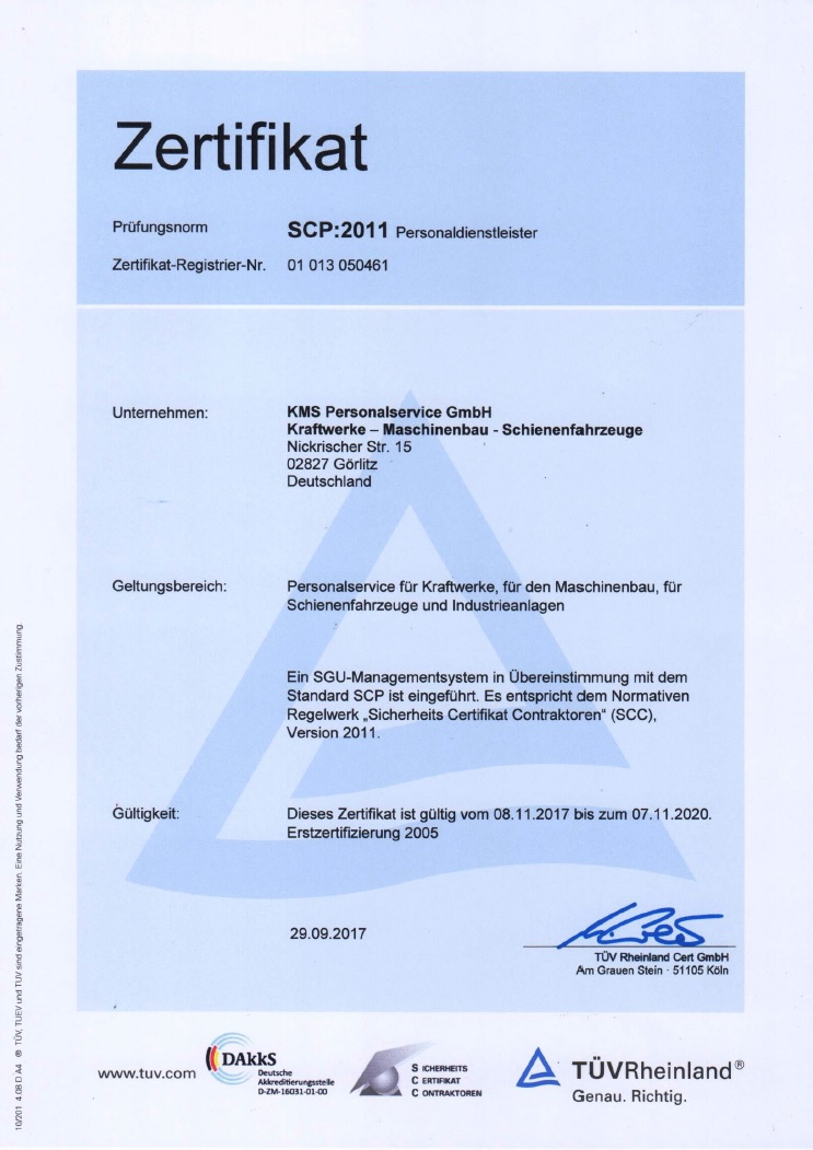 SCC Zertifizierung KMS Personalservice Görlitz