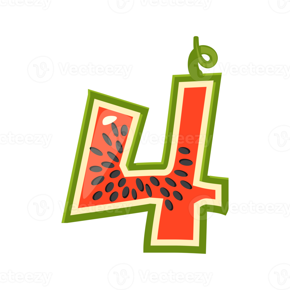 sandía de dibujos animados número 4 dígito cuatro 18734626 PNG