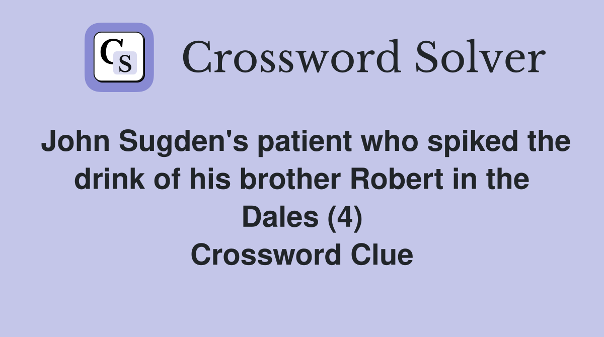 John Sugden #39 s patient who spiked the drink of his brother Robert in the