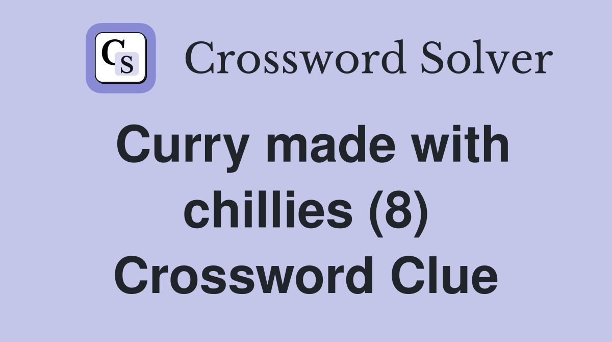 Curry made with chillies (8) Crossword Clue Answers Crossword Solver