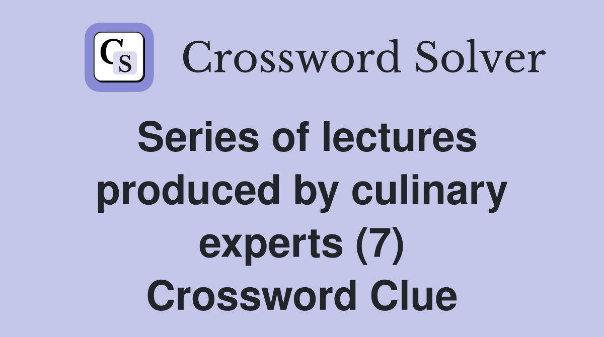 Series of lectures produced by culinary experts (7) Crossword Clue