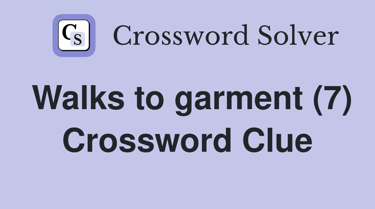 Walks to garment (7) Crossword Clue Answers Crossword Solver