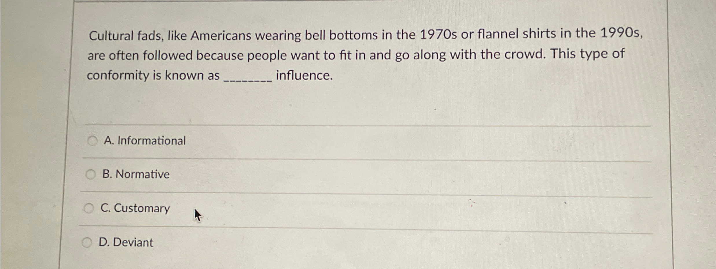 Solved Cultural fads like Americans wearing bell bottoms in Chegg com