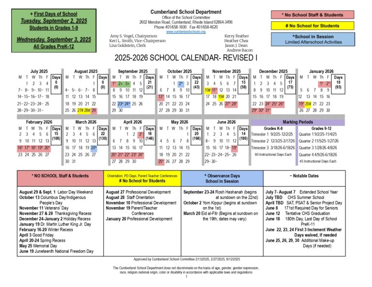 Cumberland School Department RI calendar 25 26 Revised pdf EduCounty