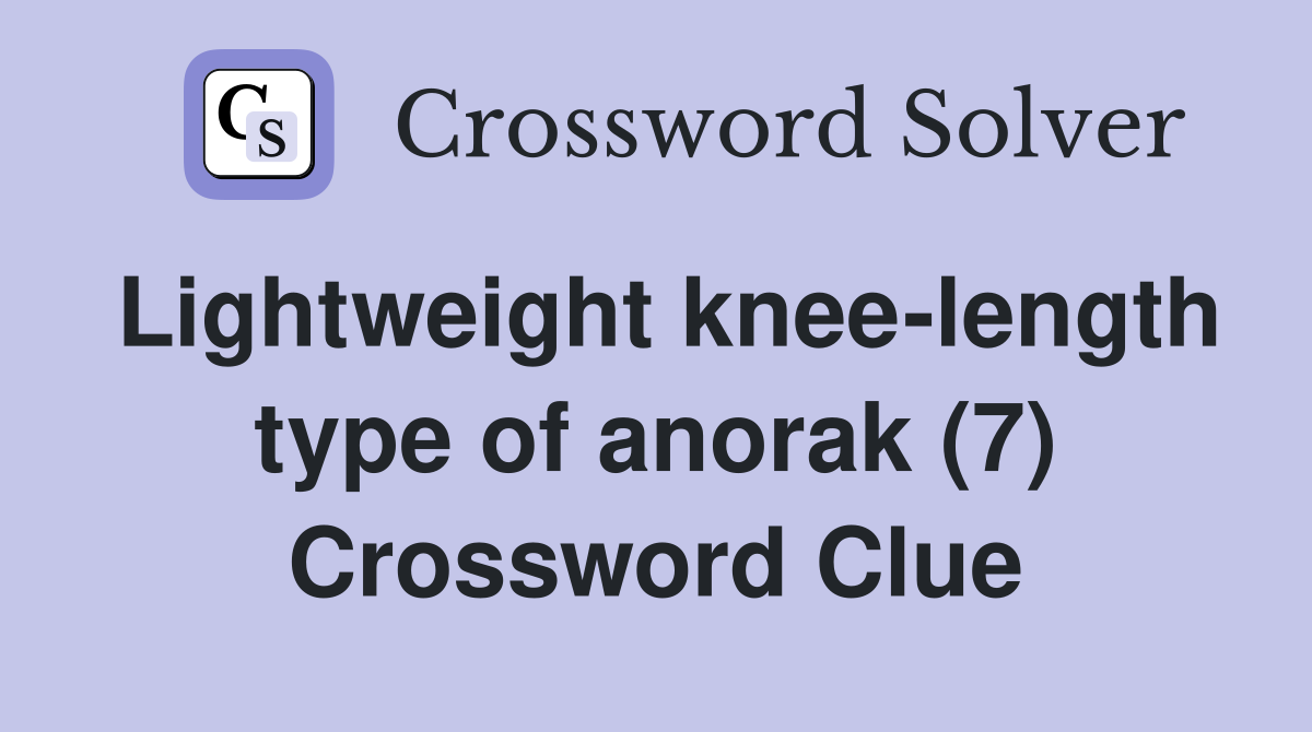 Lightweight knee length type of anorak (7) Crossword Clue Answers