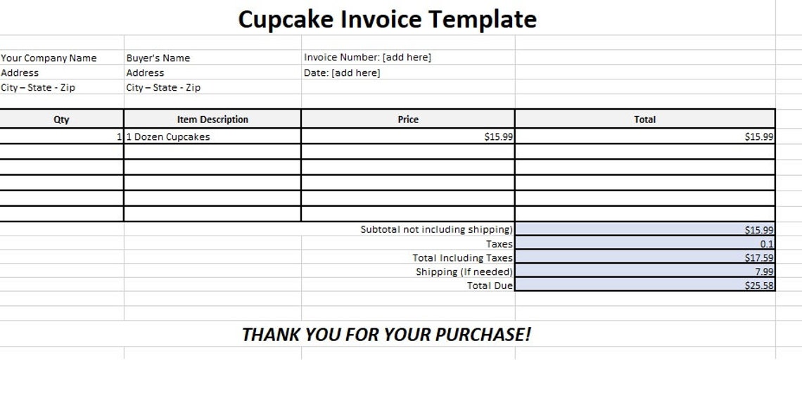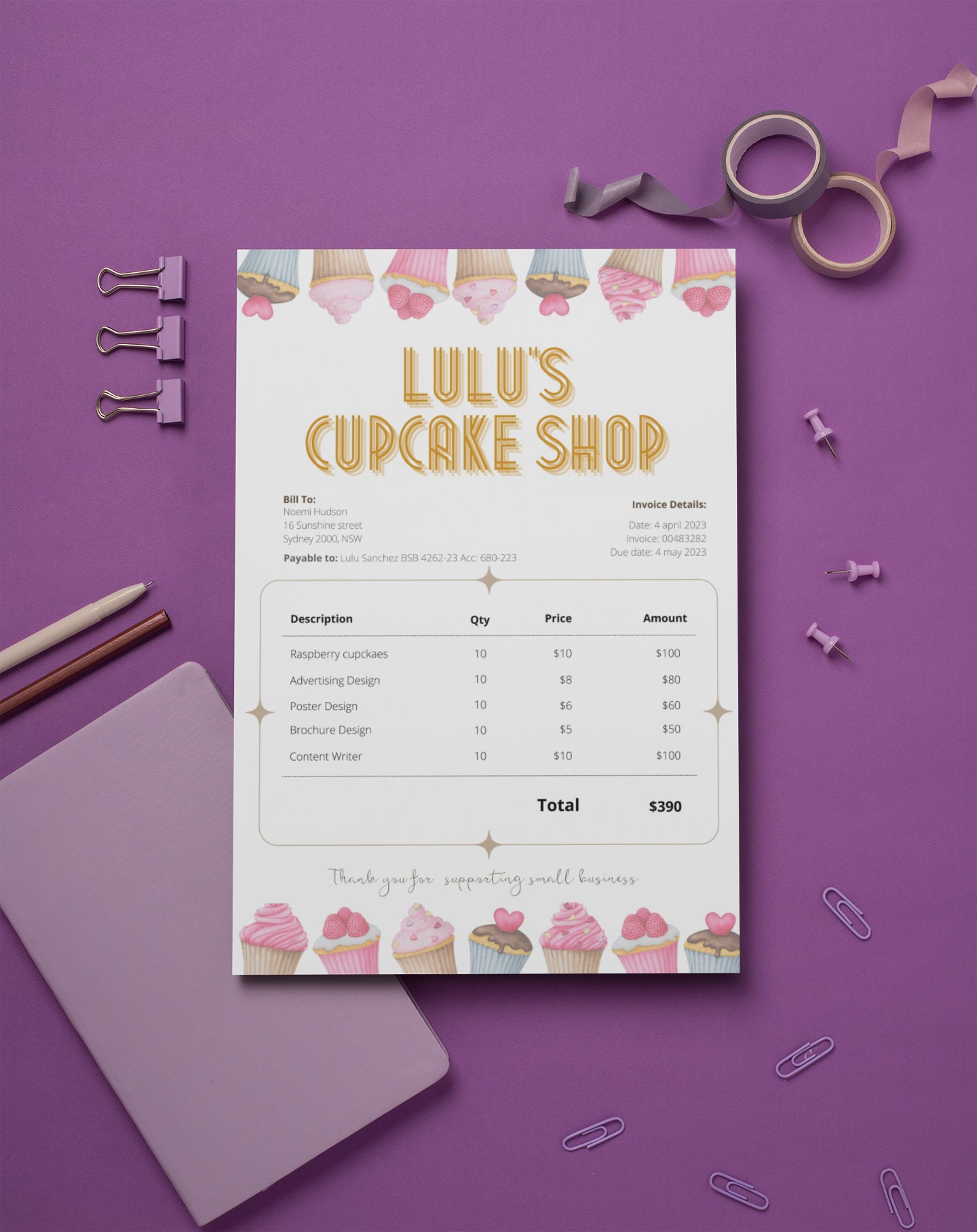 Bakery Invoice Template for Small Business Cupcake Baking Invoice