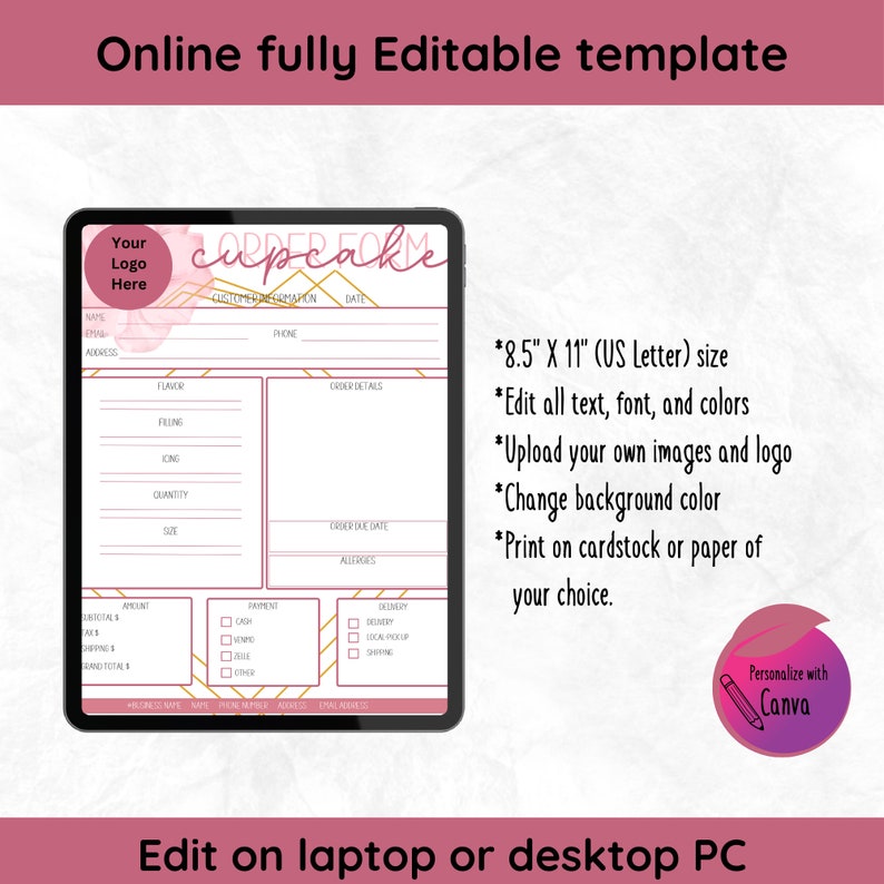 Editable Cupcake Order Form Template Bakery Business (instant