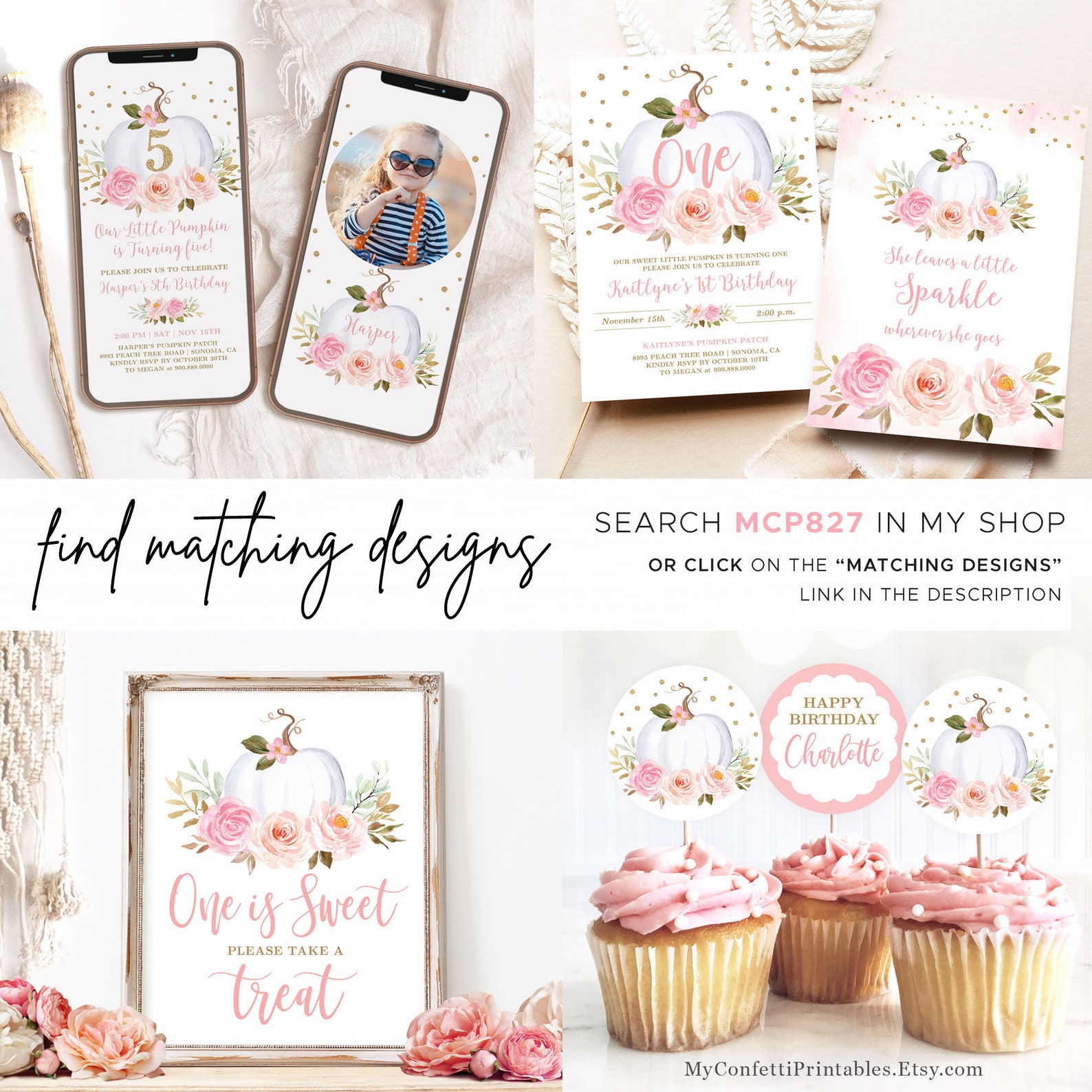 Editable ANY AGE Birthday Cupcake Topper Template Printable Pumpkin