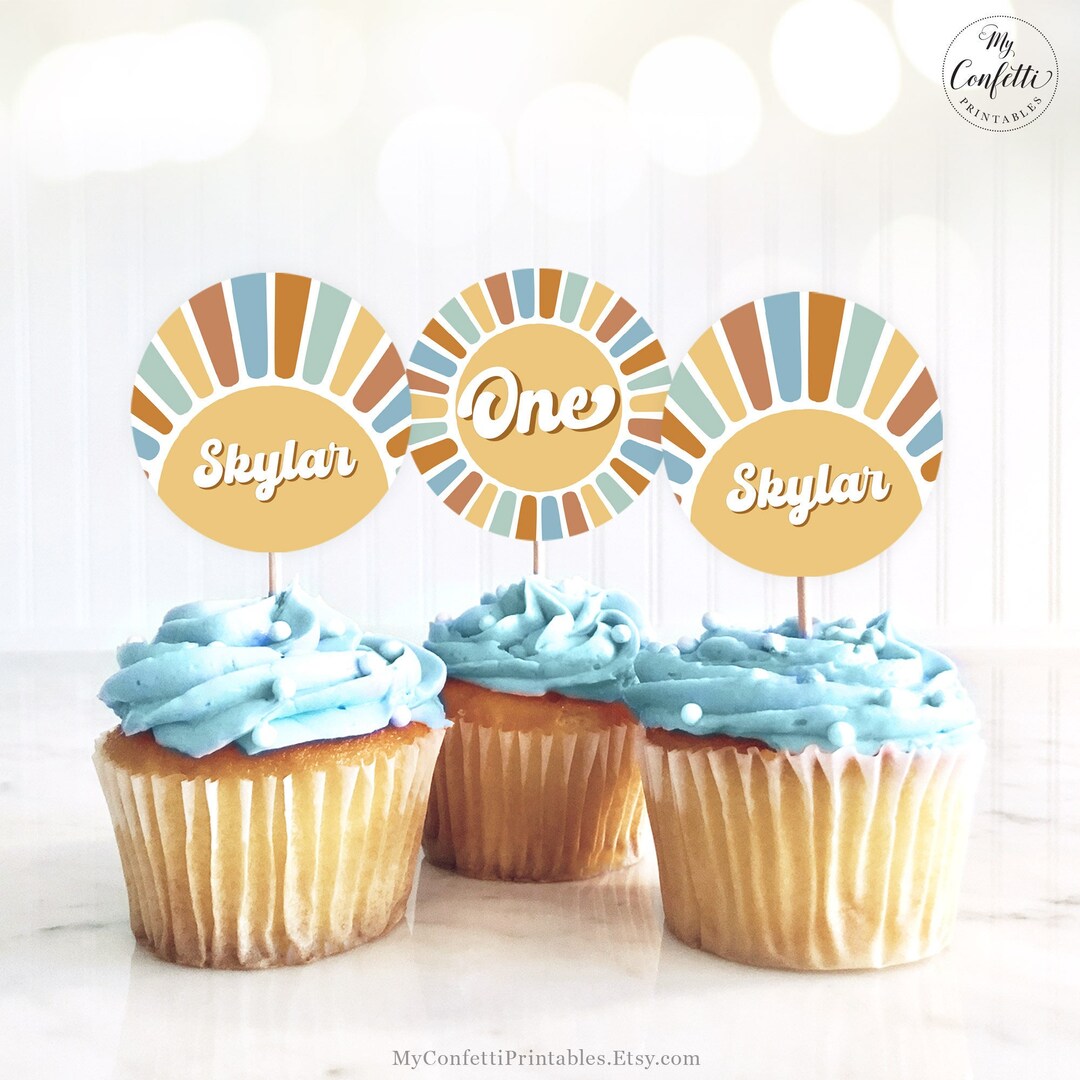 Editable Birthday Cupcake Topper Template Printable Custom Sun