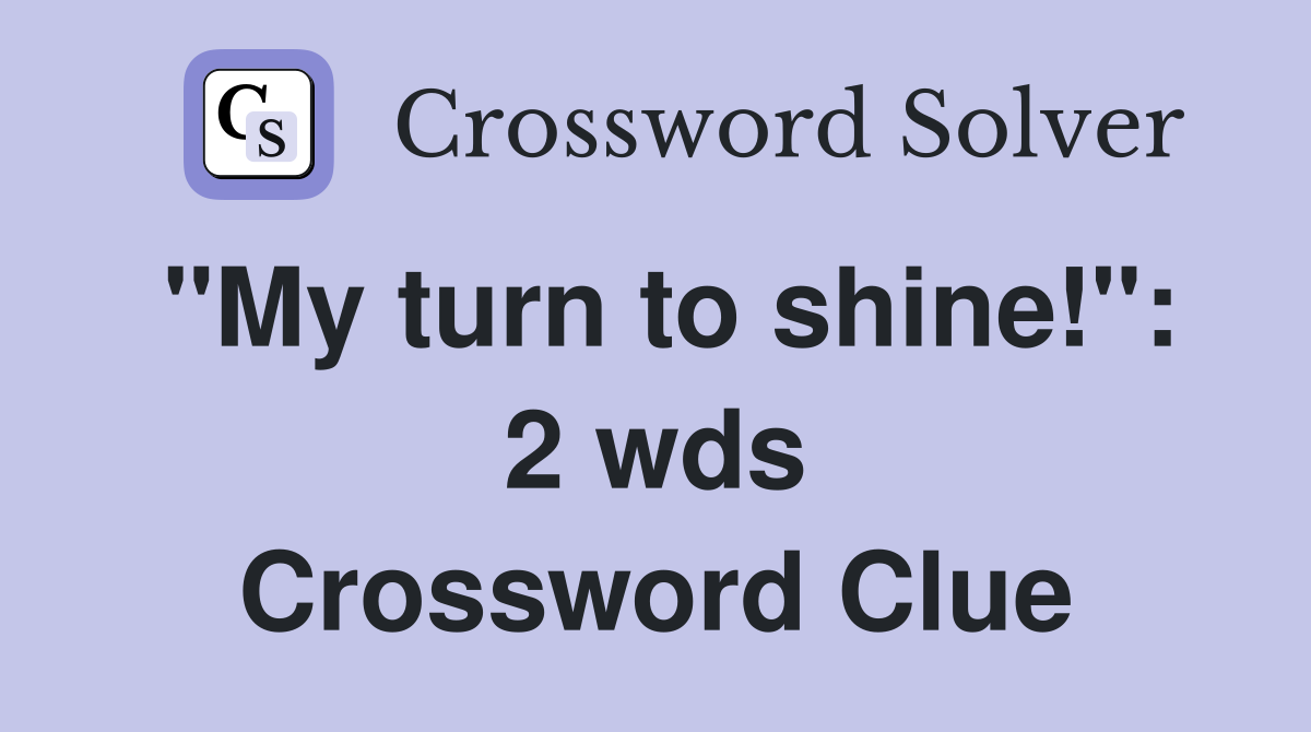 quot My turn to shine quot : 2 wds Crossword Clue Answers Crossword Solver