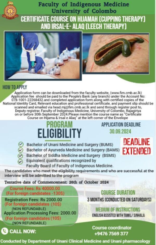 Certificate Course on Hijamah (Cupping Therapy) and Leech Therapy