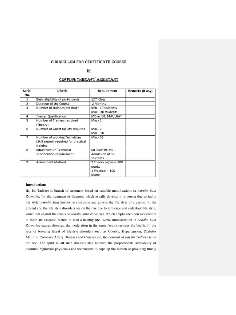 Curriculum For Certificate Course in Cupping Therapy Assistant PDF