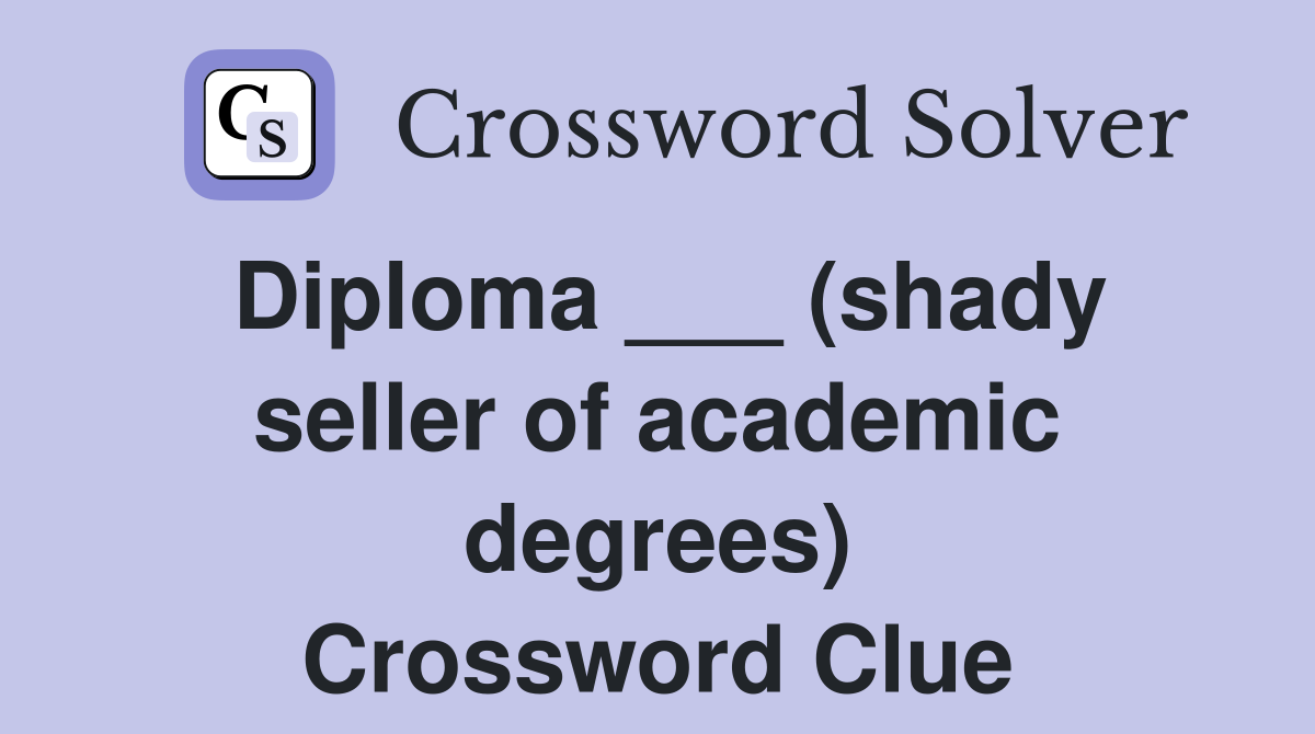 Diploma (shady seller of academic degrees) Crossword Clue Answers