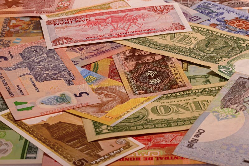 Mix of Different Banknotes Currency in All Countries in World Stock