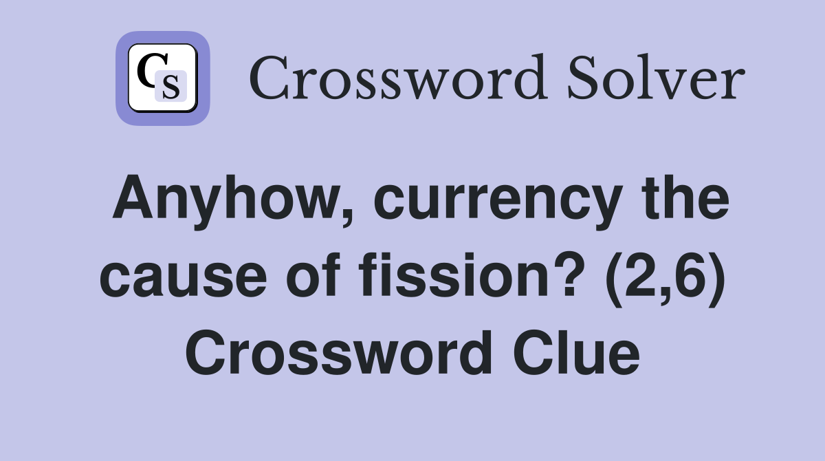 Anyhow currency the cause of fission? (2 6) Crossword Clue Answers