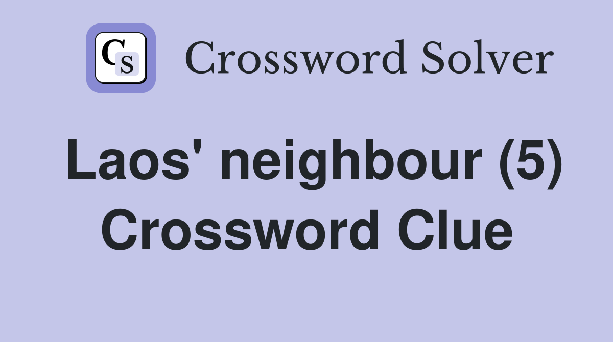 Laos #39 neighbour (5) Crossword Clue Answers Crossword Solver