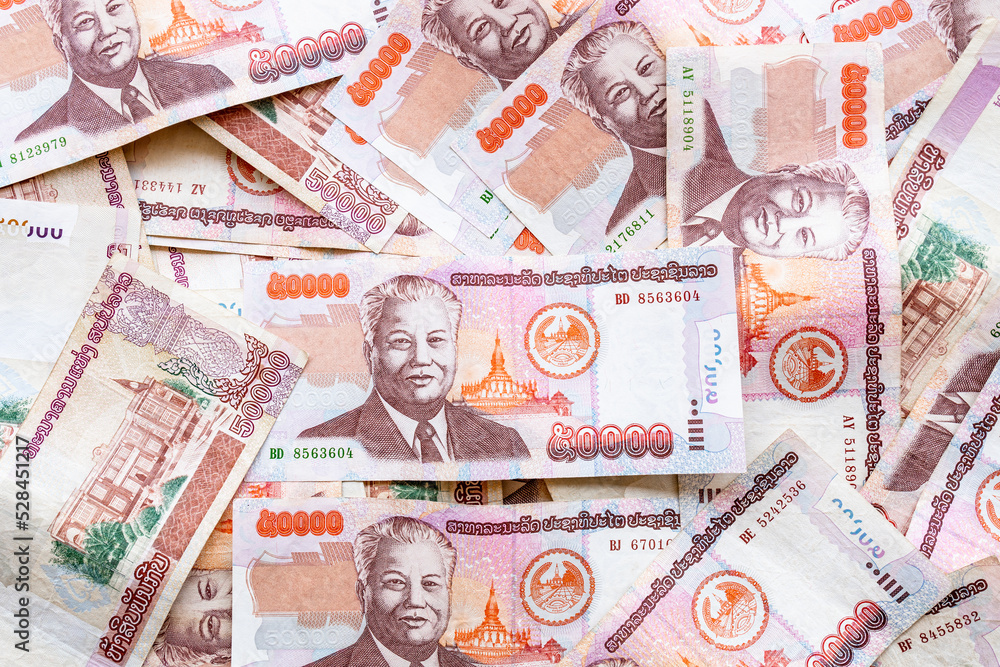 Top view Laos money kip banknotes LAK Laos Kip banknotes background