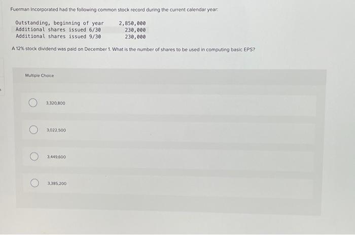 Solved Fuerman Incorporated had the following common stock Chegg com