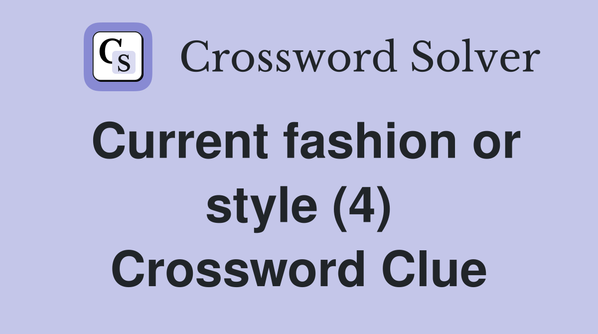 Current fashion or style (4) Crossword Clue Answers Crossword Solver