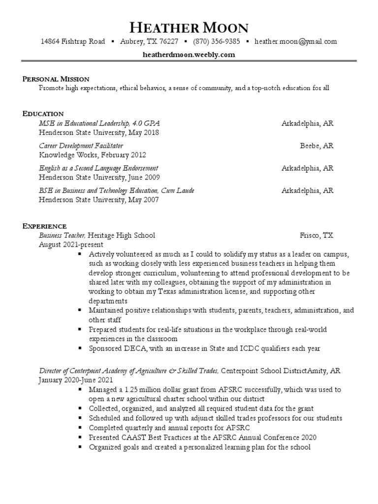 Heather Moon Cte Curriculum Coordinator Resume PDF