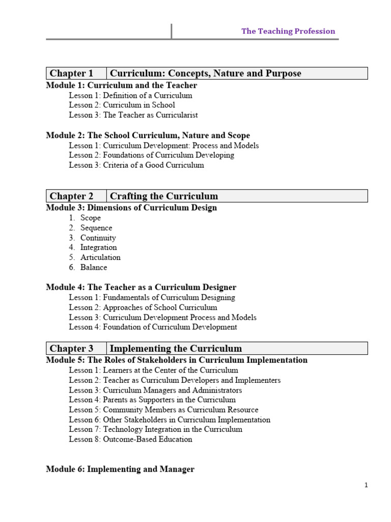 Module 1 The Teacher and The School Curriculum PDF Curriculum