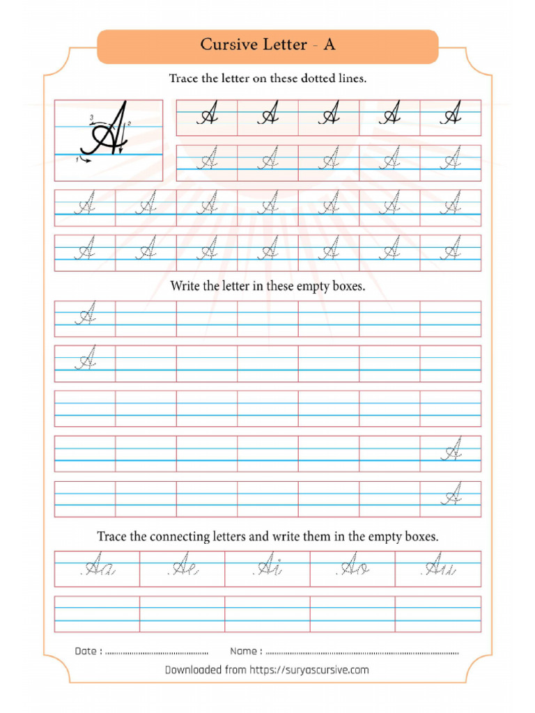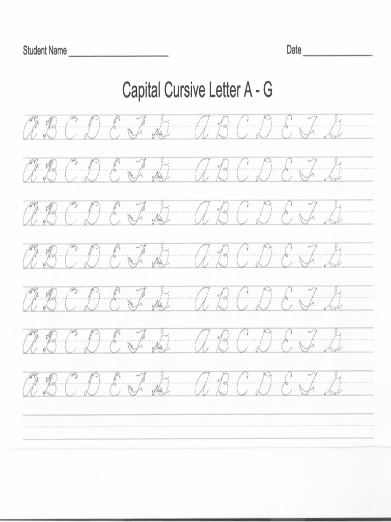 Cursive writing practice sheet for capital and small letters Artofit