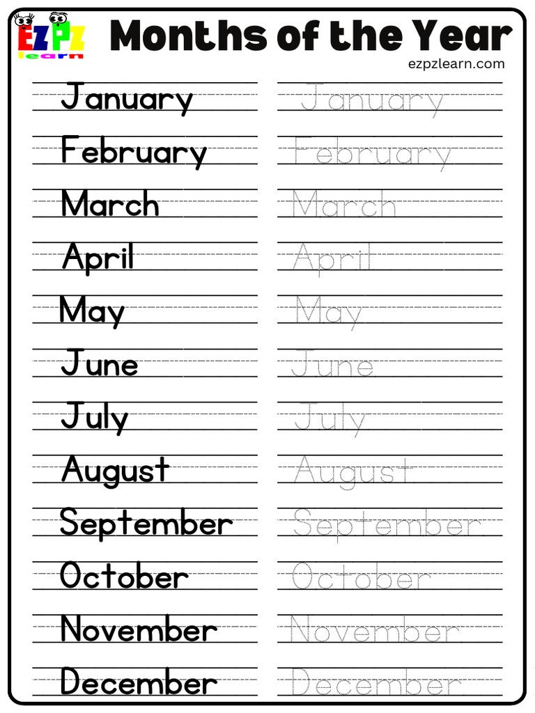 12 Tracing Worksheets Months Of The Year / worksheeto com