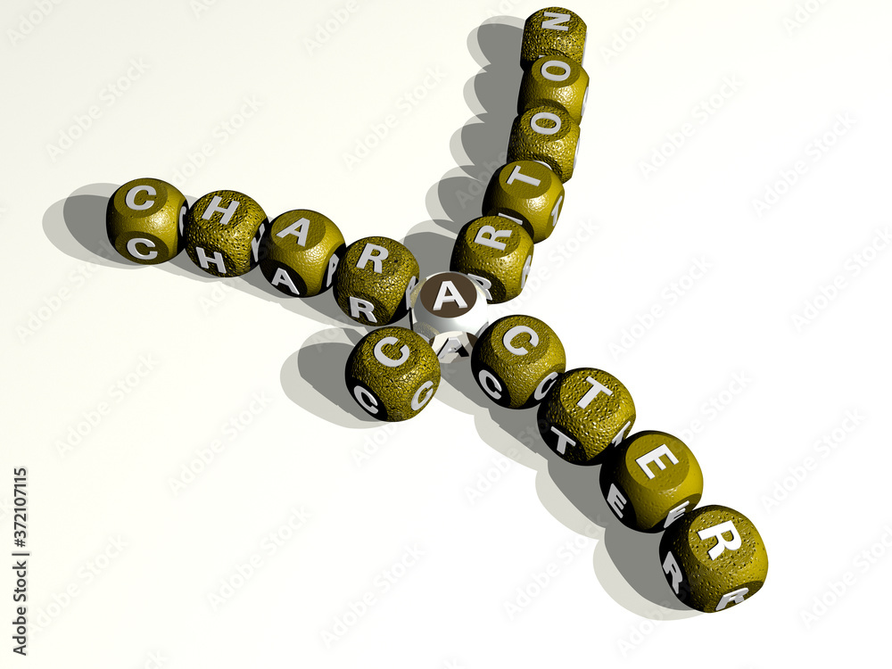 CARTOON CHARACTER crossword of curved text made of individual letters