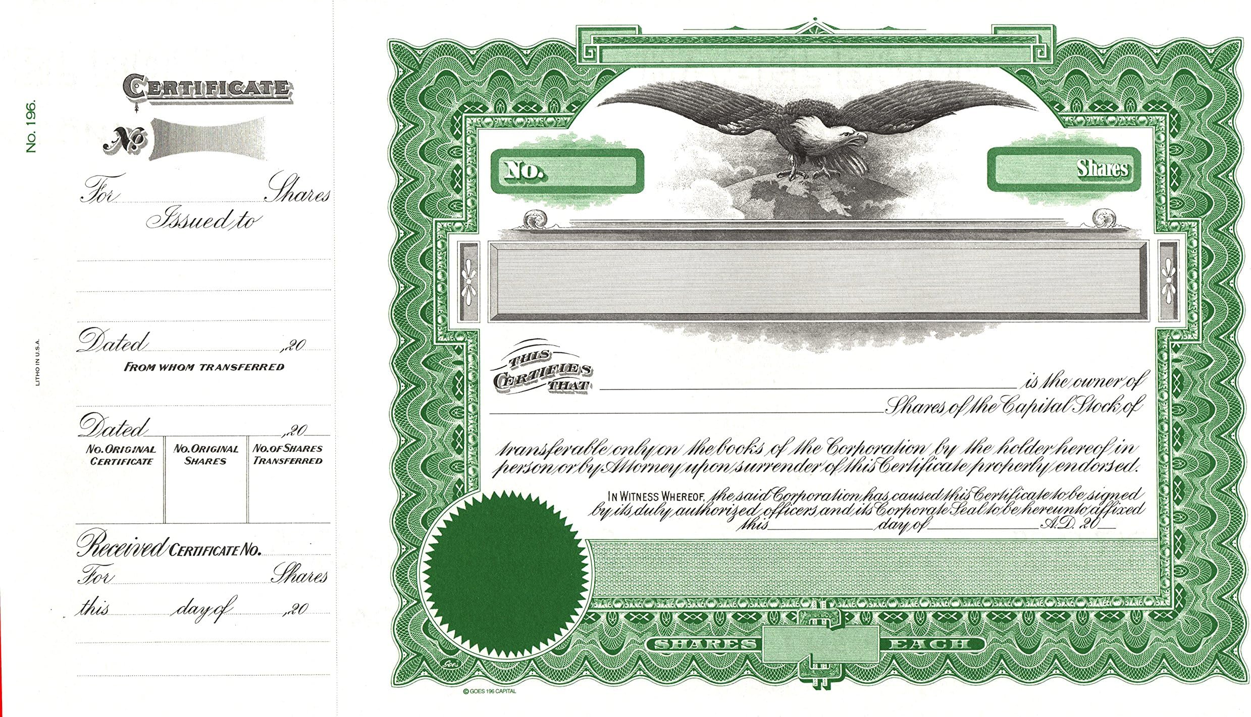 Custom Printed Stock Certificates For Sale Online Long Form Templates