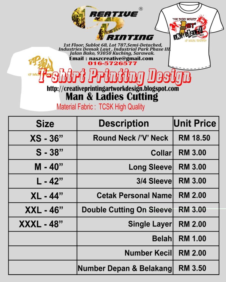 √ Custom T Shirt Price List Template