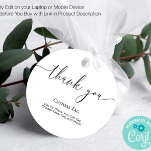 Round Thank You Tag Custom Tag Template Editable Minimalist Etsy