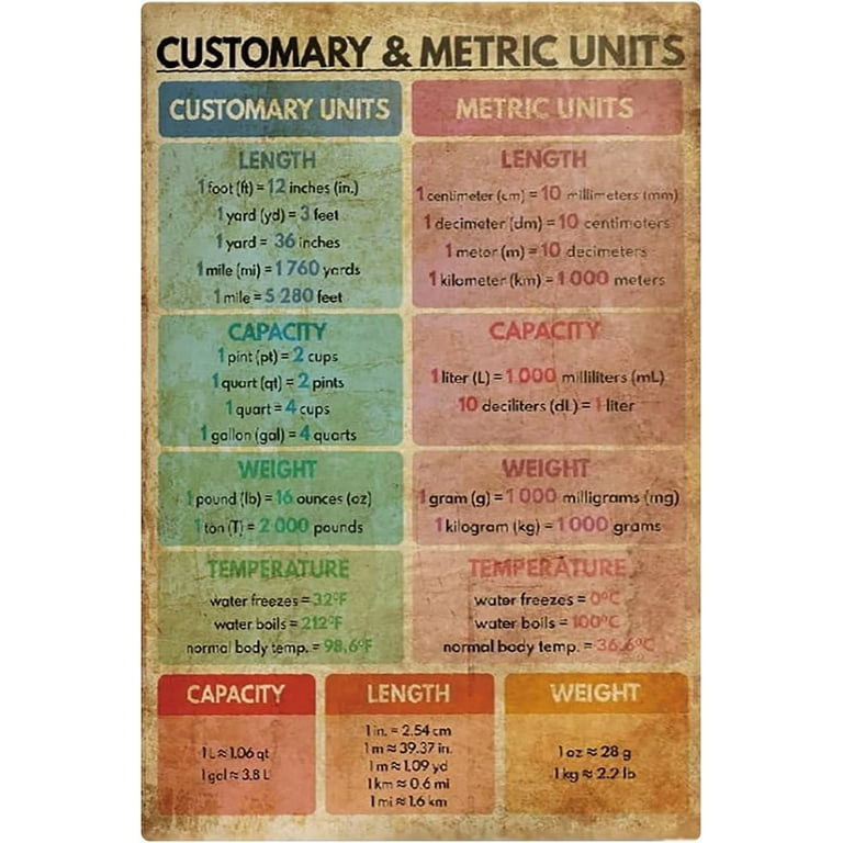 Customary and Metric Conversion Chart Length Weight and Capacity