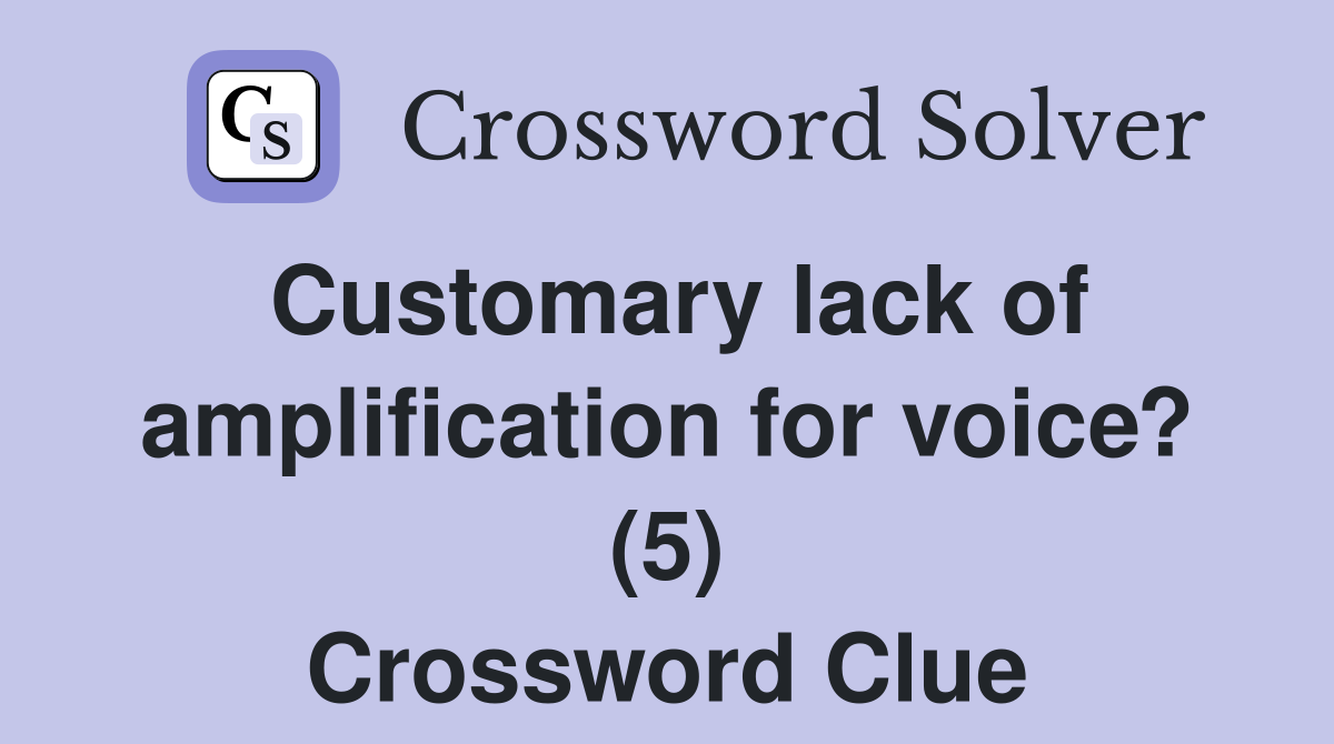 Customary lack of amplification for voice? (5) Crossword Clue Answers