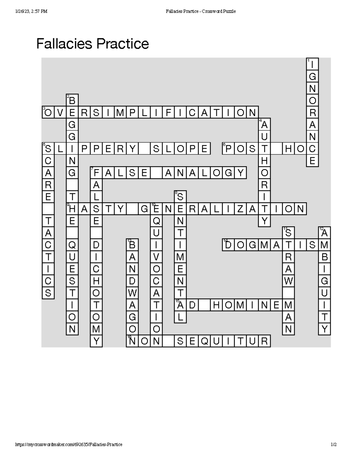 Fallacies Practice Crossword Puzzle 1/26/23 2:57 PM Fallacies