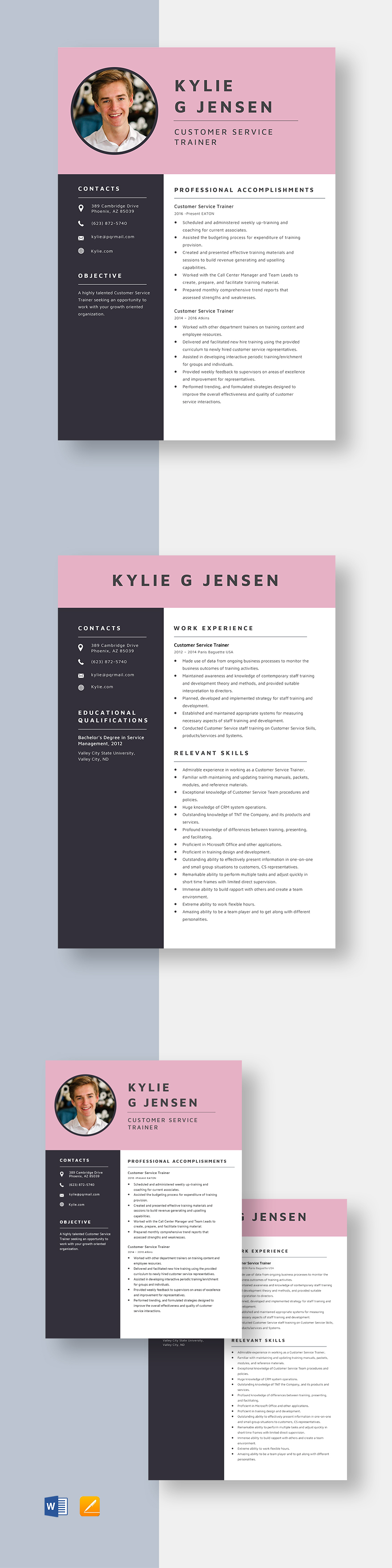 Customer Service Trainer Resume Template Word Apple Pages Template net