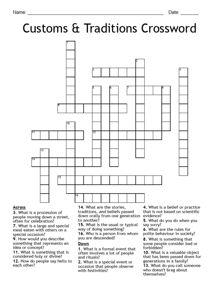 Military Traditions Customs and Courtesies Crossword Puzzle