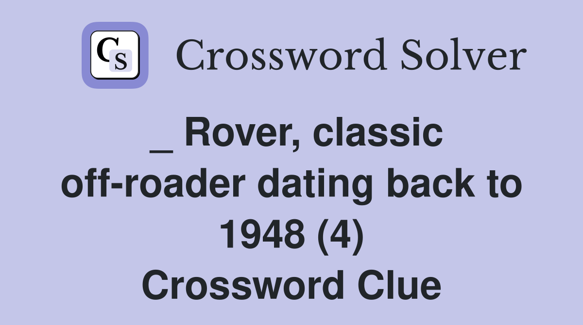 Rover classic off roader dating back to 1948 (4) Crossword Clue