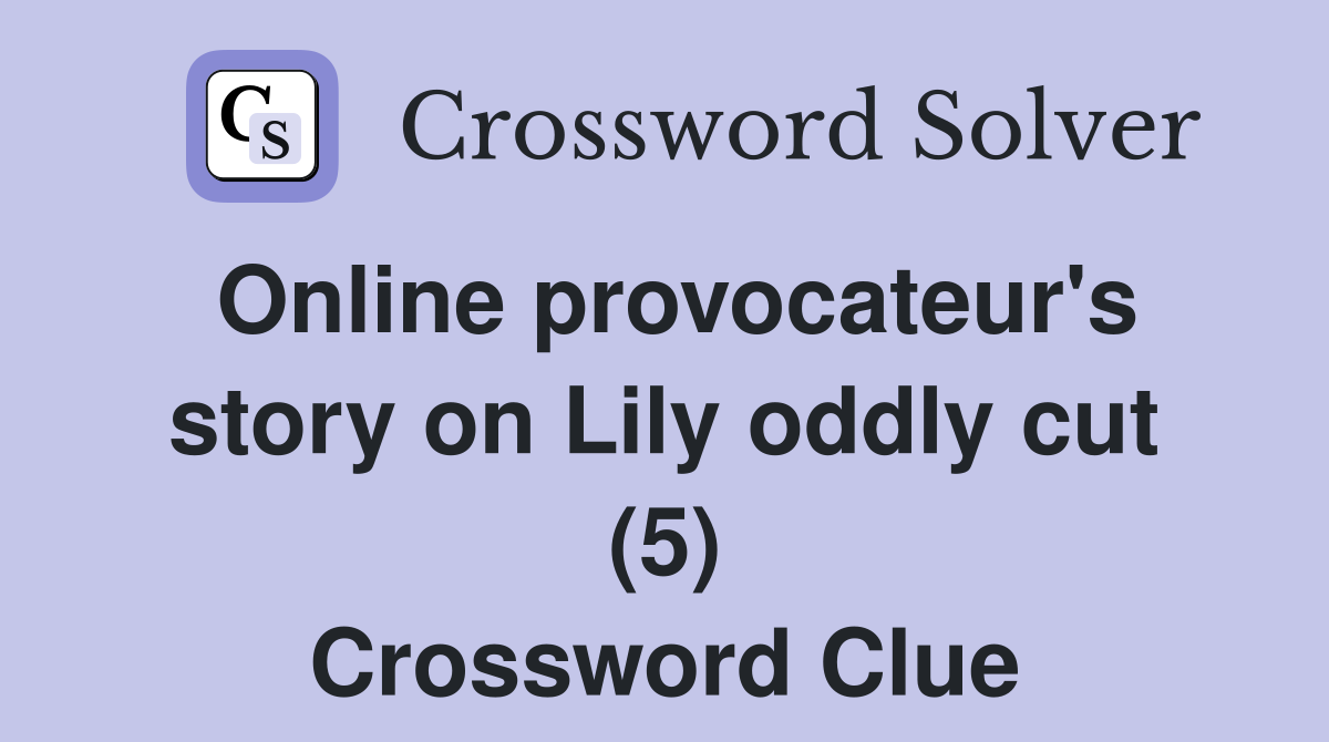 Online provocateur #39 s story on Lily oddly cut (5) Crossword Clue
